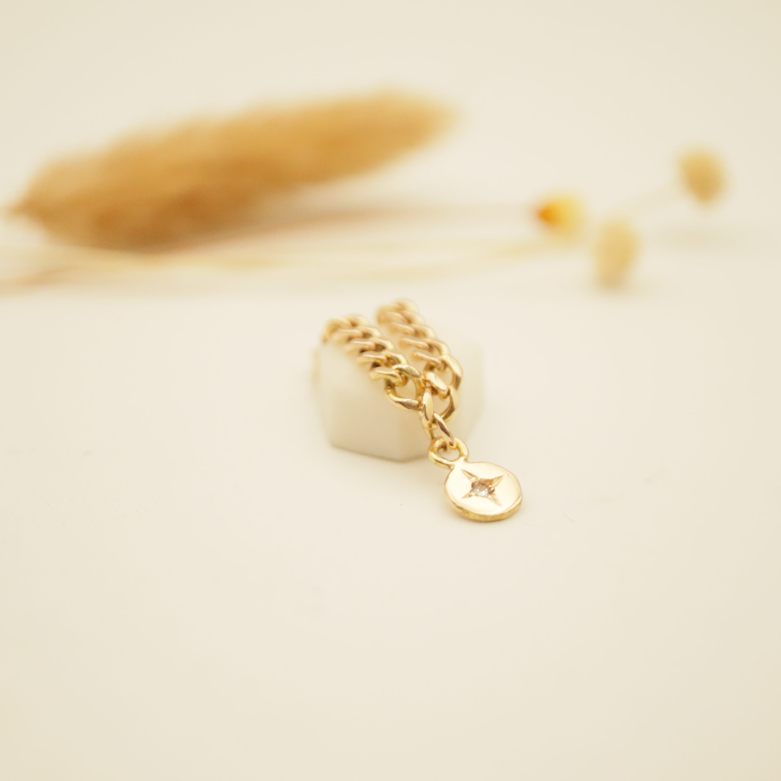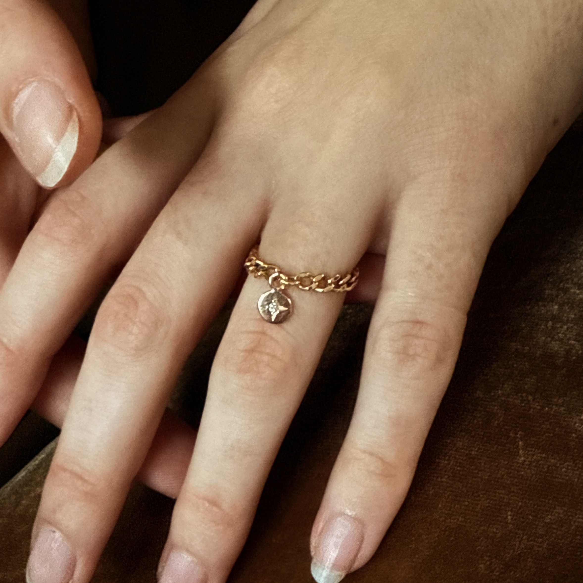 La bague ADÉLIE allie élégance contemporaine, design féminin et démarche responsable. Réalisée en or rose 18 carats, 750/1000, cette création artisanale se distingue par la présence d’une chaîne upcyclée issue d’une ancienne gourmette de 3 mm, soigneusement retravaillée pour donner naissance à un bijou singulier, délicat et plein de caractère. Chaque pièce est pensée pour valoriser la matière existante tout en offrant un style moderne et raffiné.