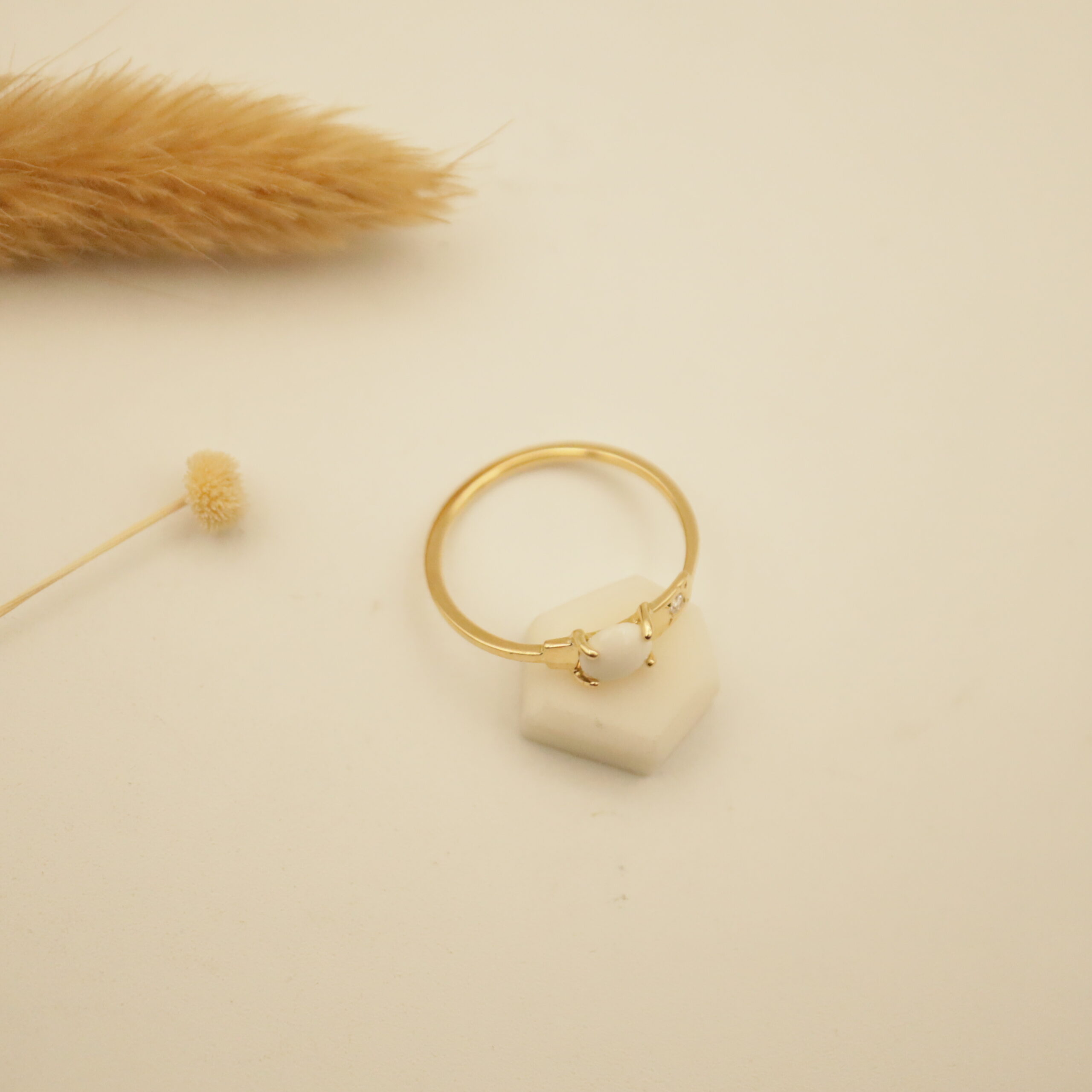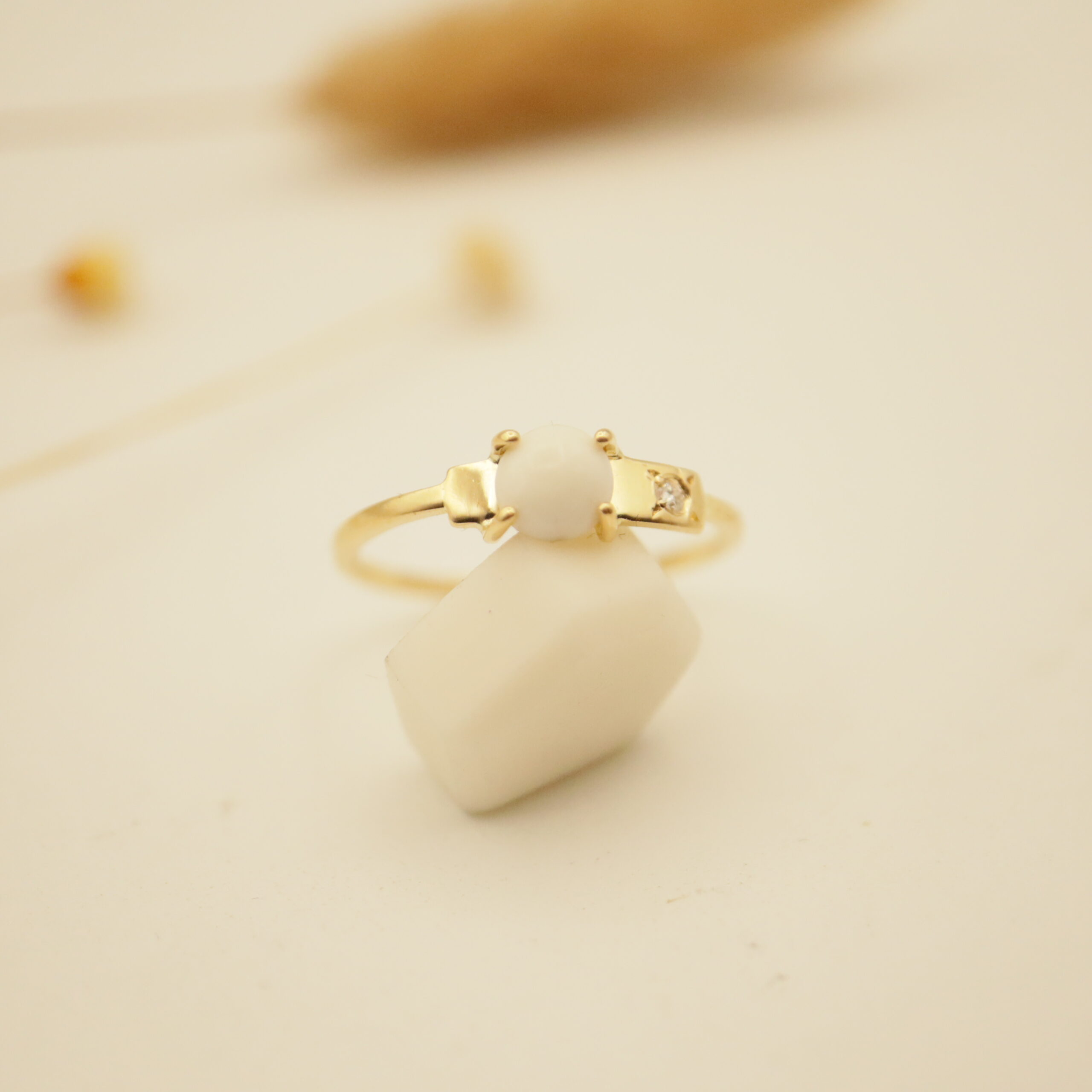 La bague LÉANDRE est un petit anneau discret et moderne, elle apporte une touche contemporaine avec la porcelaine et le diamant incrusté dans la plaque. La porcelaine peut-être de différente taille et forme (cabochon comme ici ou géométrique comme le modèle LUCE) . Ce modèle est assorti à la médaille, au collier et au jonc de la même gamme.