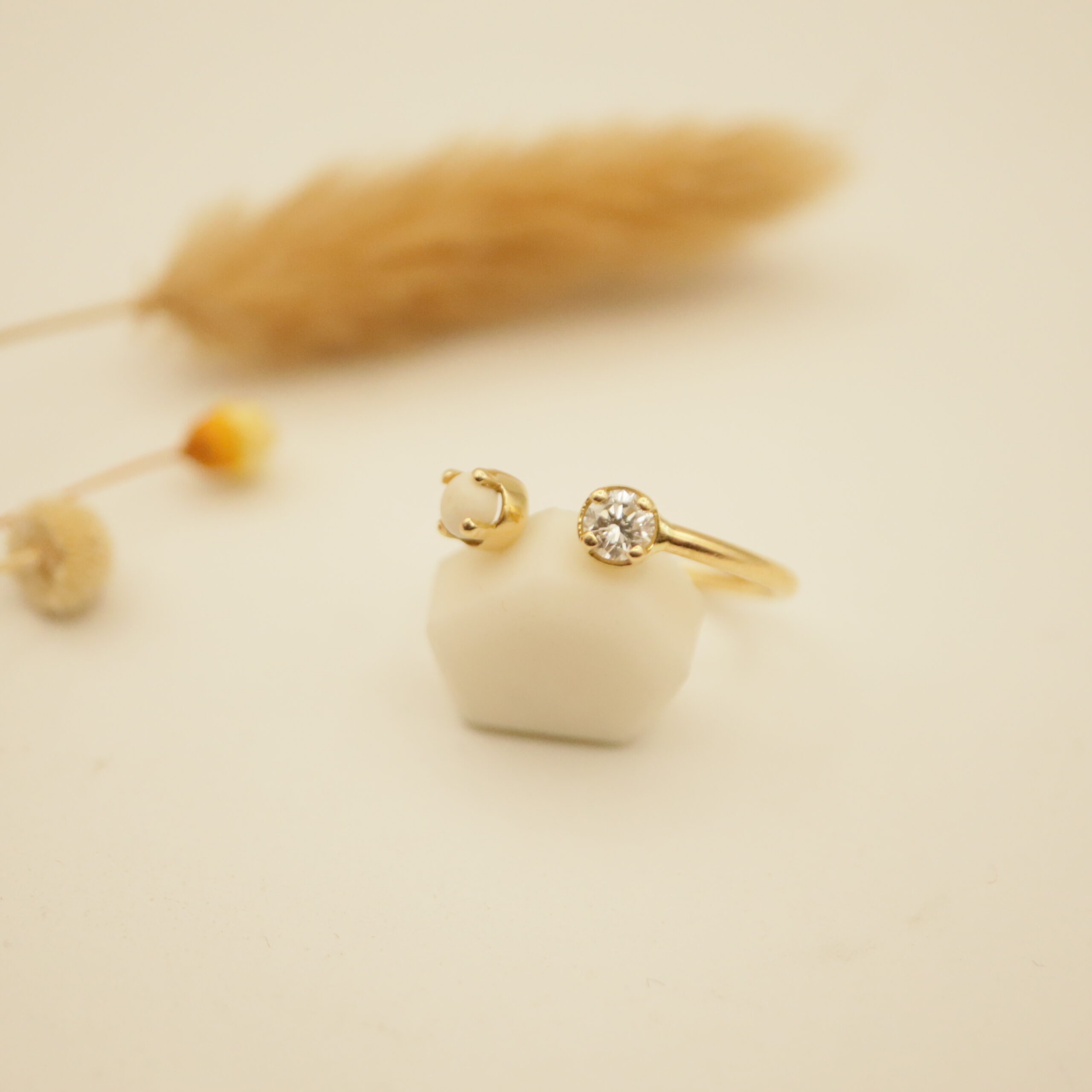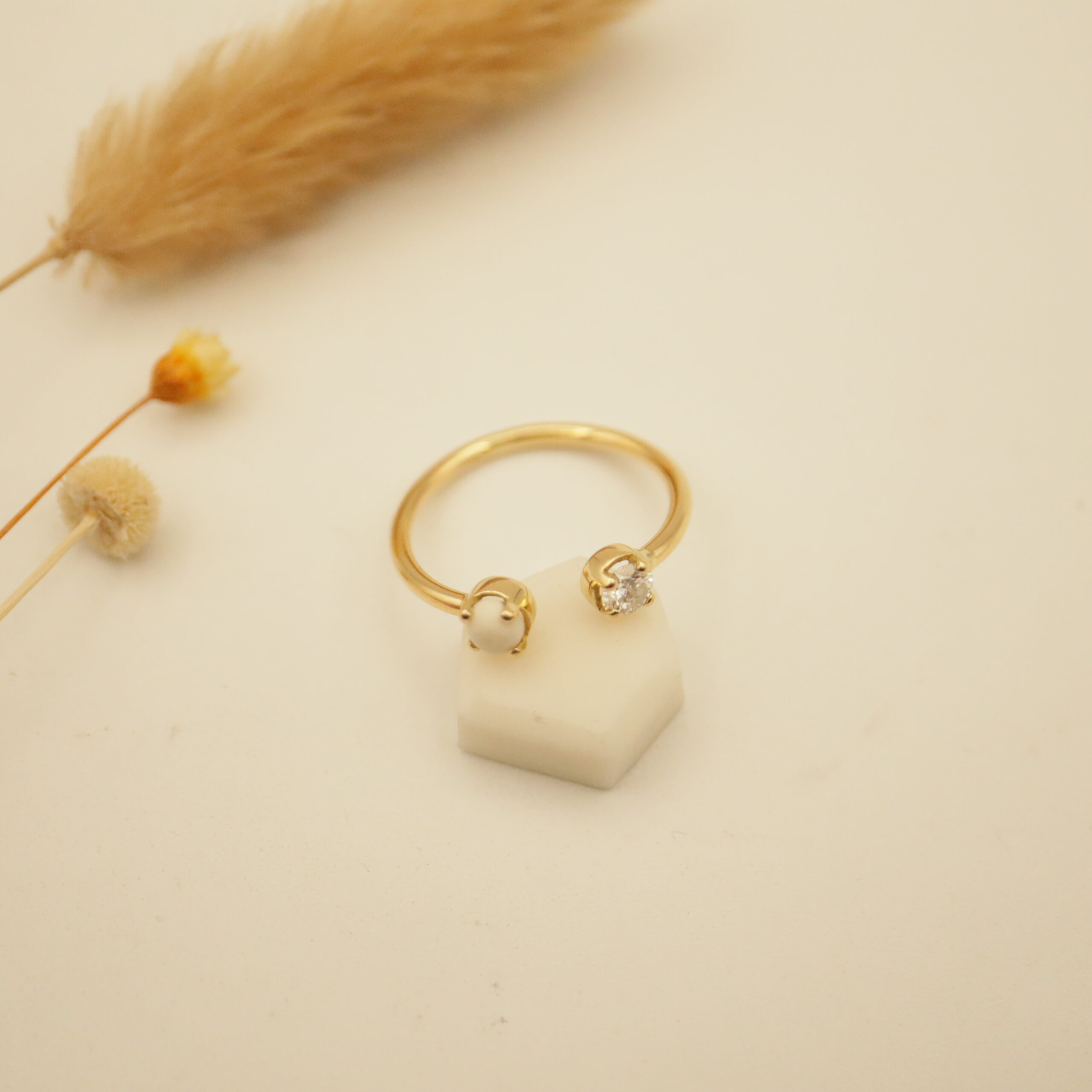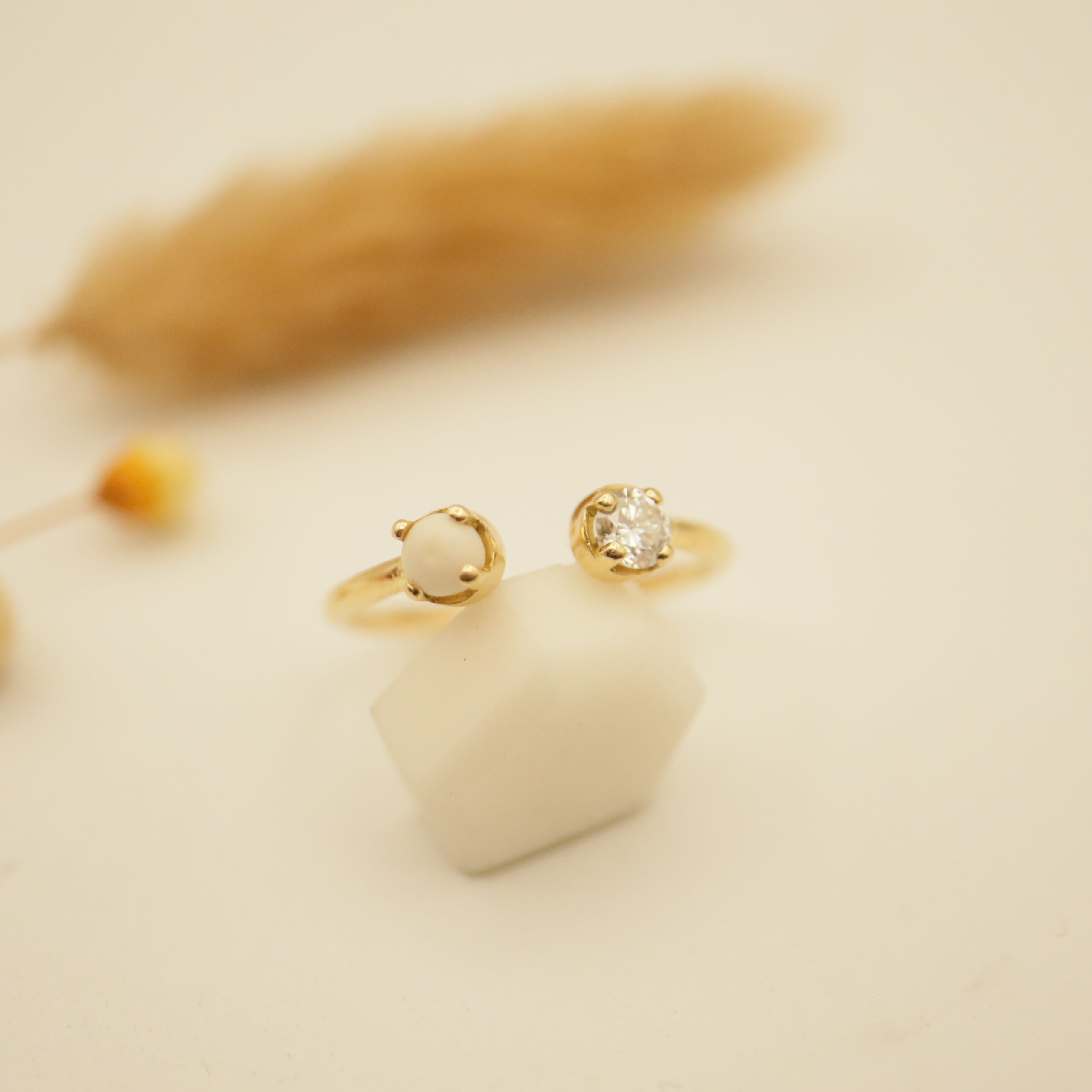 Bague PÉTRONILLE en or jaune 18 carats, 750/1000 avec une porcelaine biscuit et un diamant G-Si, 0,14 ct, tous deux sertis et de diamètre d’environ 3,3 mm.