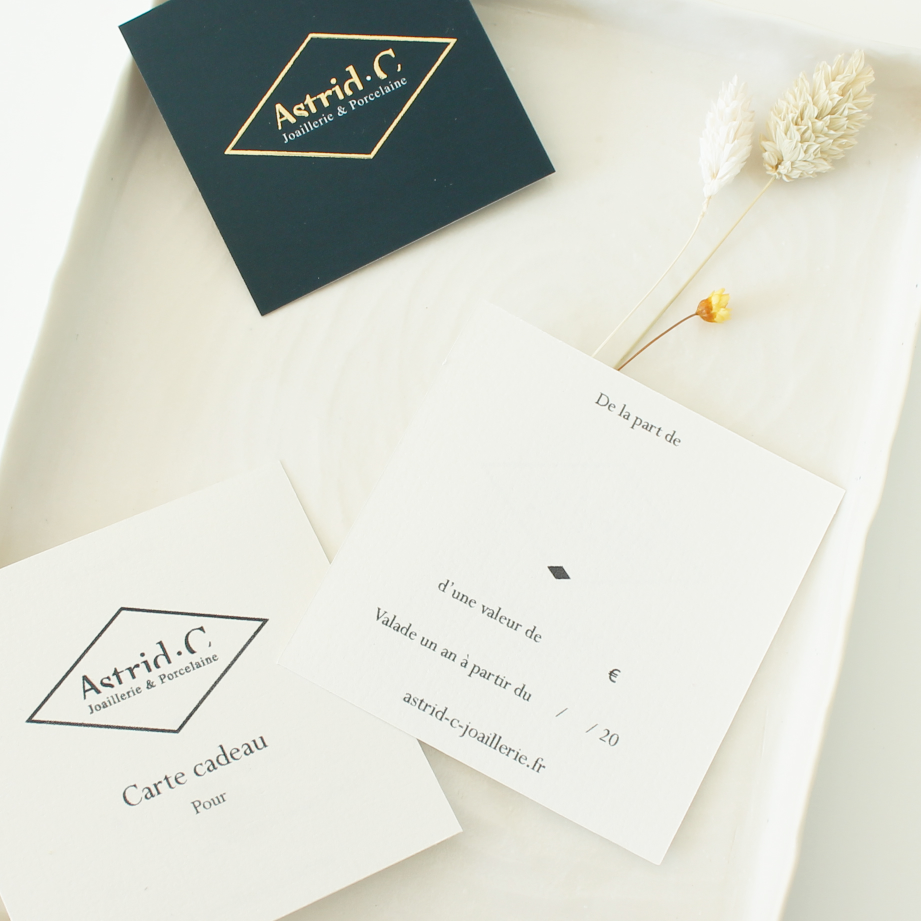 Avec la carte cadeau ‘Astrid.C Joaillerie & Porcelaine’, disponible en seulement quelques clics, vous pourrez écrire des mots doux directement à la personne de votre choix.